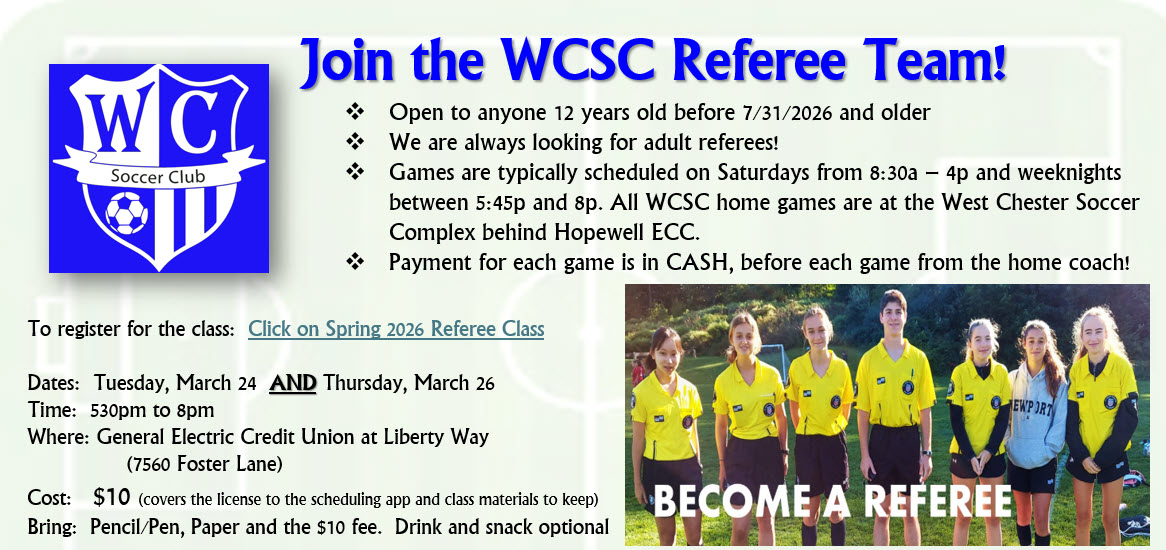 Details for the Fall WCSC referee class will be posted in June!